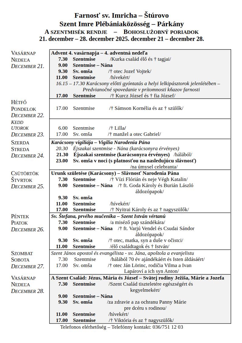 Rímskokatolícka cirkev, Farnosť Štúrovo, Sobieskeho 18, 943 01 Štúrovo; e-mail: sturovo@nrb.sk